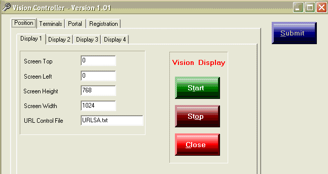 This screen is used to alter the position of the Vision display for one or multiple streams, screen resolution or to close vision.